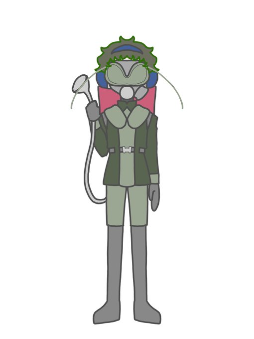 えへ……勝手にかいちゃった…… 蝗害を神格化した王……を、自ら騙るバッタ 本当はそれに仕えるバッタ 第二で騙って第三で元に戻る 首にあるでかい輪っかは王冠(本人にはぶかぶかなので肩まで落ちてる)