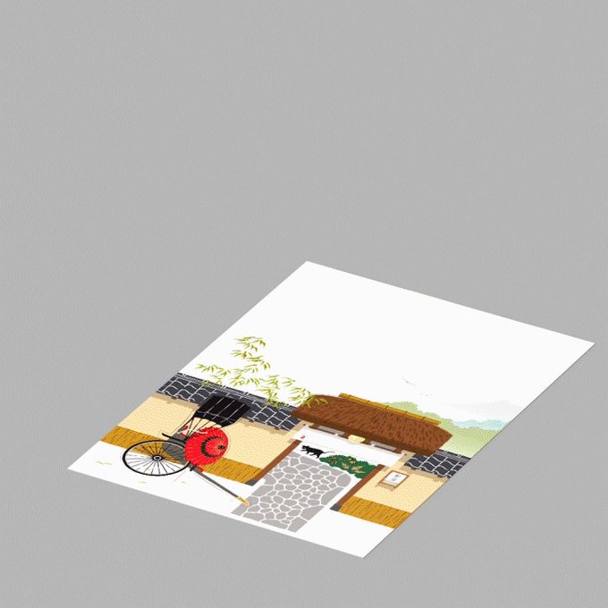 絵柄に沿った切込みを折ると、立体的な情景が起き上がる #街並はがき です。