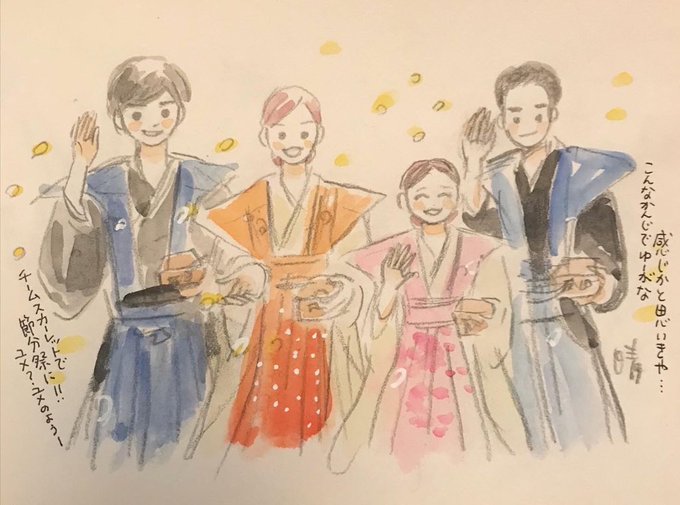 とりあえずめでたそうなの再掲😊#戸田恵梨香さんおめでとう #スカーレット #豆まきの日の4人は素敵でした
