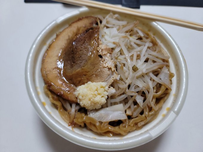 .@nyPnUUoarZgVg9U 『湯気を放つどんぶり一杯のメガ盛りチャーシュ刻みニンニクマシマシアブラギトギト豚ラーメン!にんにくは入』