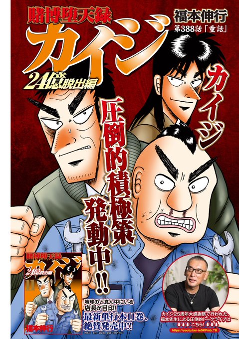The LCP is for chapter #454 of Nobuyuki Fukumoto's 'Tobaku Datenroku Kaiji - The 2.4 Billion Yen Escape Arc'. The illustration promotes the manga's 22nd volume, which was released on March 6. #賭博堕天録カイジ24億脱出編