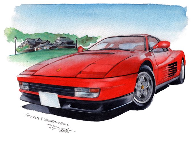#赤いカーモデルが好きだ選手権 赤ってやっぱり力強くてカッコいいよね #車イラスト #透明水彩