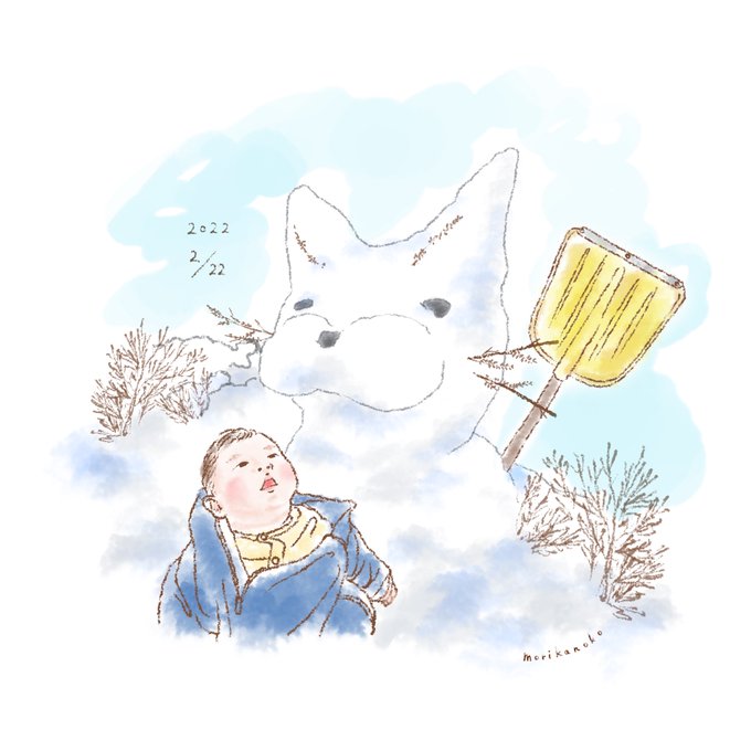 #illustration #illustrator #イラスト依頼募集中 #手描きイラスト #赤ちゃん #赤ちゃんのいる生活 #赤ちゃん日記 #育児日記 #猫の日 #雪だるま #2022年2月22日