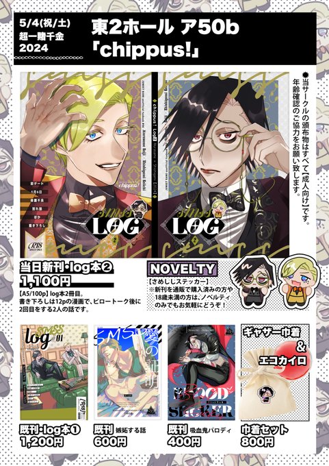 5/4(土/祝)スパコミ内開催の超一賭千金2024に参加します!東2ホール【ア50b】chippus!です。新刊はこちら(https://t.co/OFxvyZucwy)