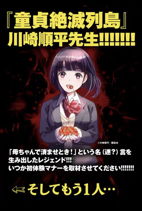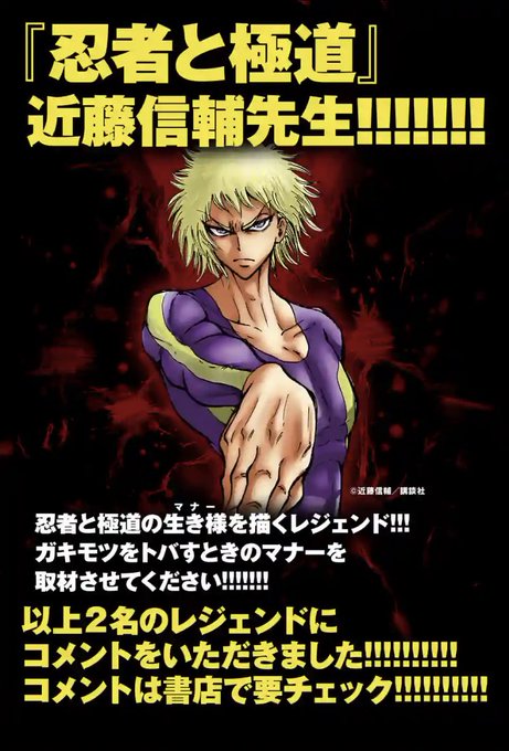 なんと『童貞絶滅列島』の川崎順平先生と(@tokyonuenue )『忍者と極道』の近藤信輔先生(@kong_doing )とから帯コメントを頂いています!!!