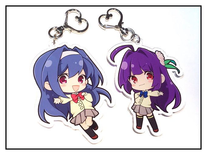 そして!妄想はアイである。キャラグッズ第一弾!乃木さやかと近藤真琴のアクリルキーホルダーを明日の物販で販売します!!付けるところがアイある仕様でハートマークになってるんだよo(*゚▽゚*)o♡わぁ!可愛い!サイズは縦横約75mmで各800円です!今後、他のキャラを増やしていく予定! #アイある