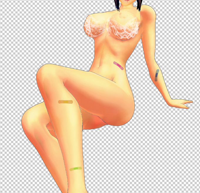 一回服を消して、下着とばんそうこ。