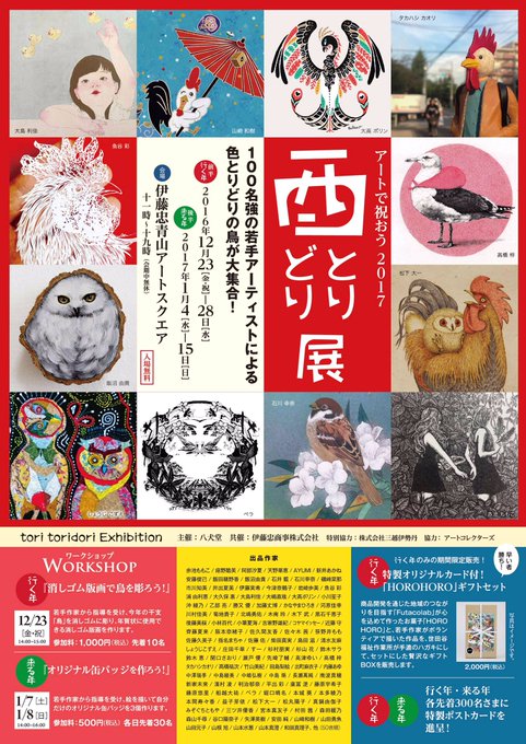 酉とりどり展は絶賛開催中。15日までです。1月15日まで、無休です。 #酉とりどり展 #伊藤忠青山アートスクエア #外苑前 #青山 #表参道 #アート #鳥 #八犬堂 #若手アーティスト #bird #art #itochuaoyamaartsquare