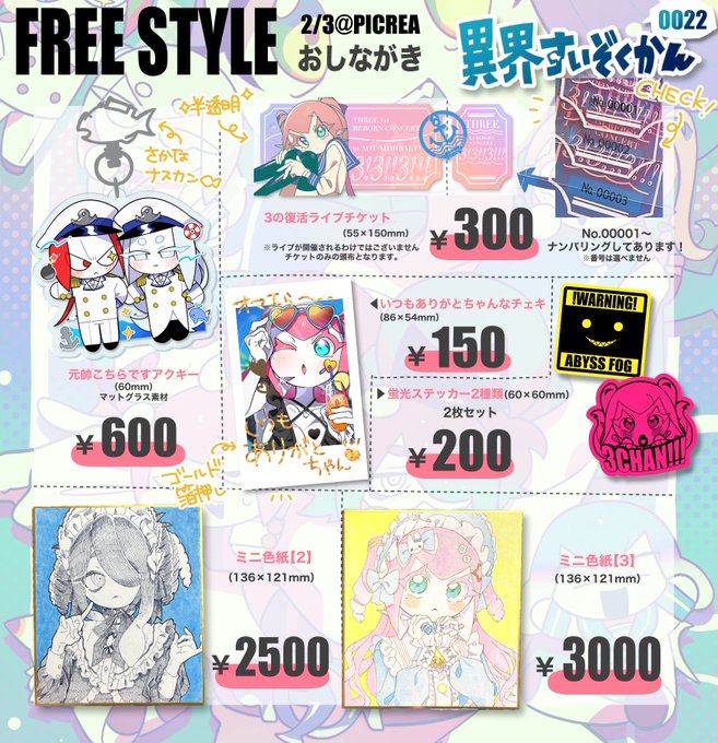 何度もすみません😭明日ピクリエ(オンライン)にて開催される“FREE STYLE”のお品書きです🐟❕リプライにグッズの詳細など追加していきます🗓️