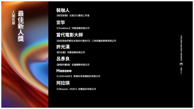 台湾のグラミー賞にあたる《金曲獎 𝖦𝖬𝖠》のノミネートが発表!