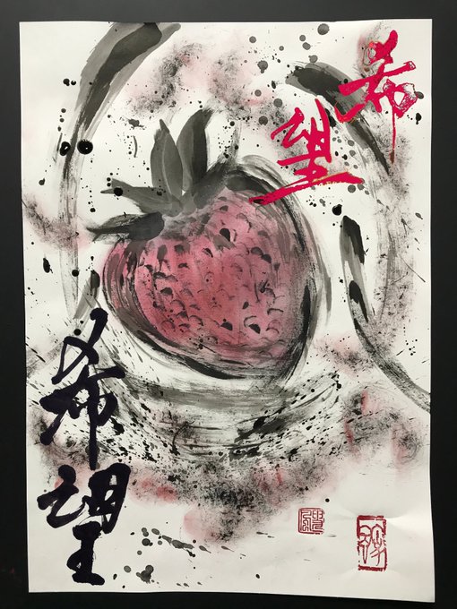 苺プロジェクトで書を送っていただいた