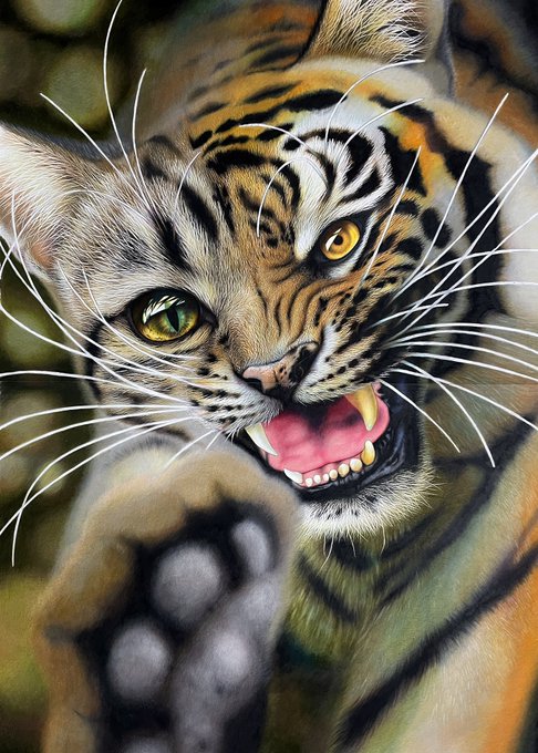 4枚目の作品はA0サイズで、にゃんこと虎を融合させた大学卒業制作です😚