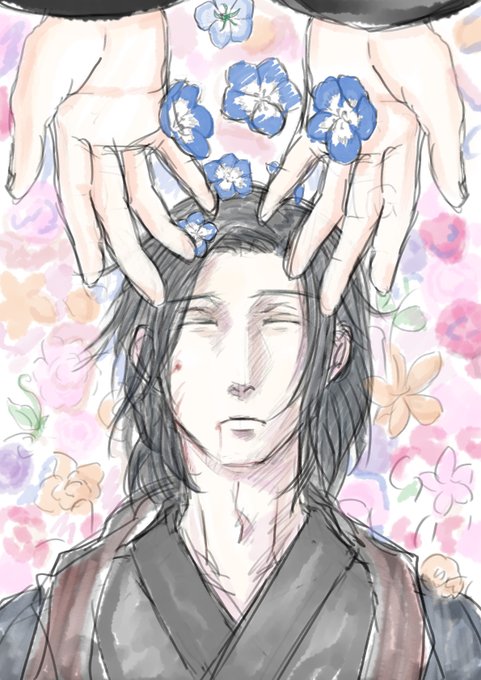 貴方の眸と同じ色 いまや吾が手も亦 紅 #阿選献花 大丈夫、軍人だから元から真っ赤だよ! 線画の時点でわやだったのですが線画の方がまだましだった気がする。
