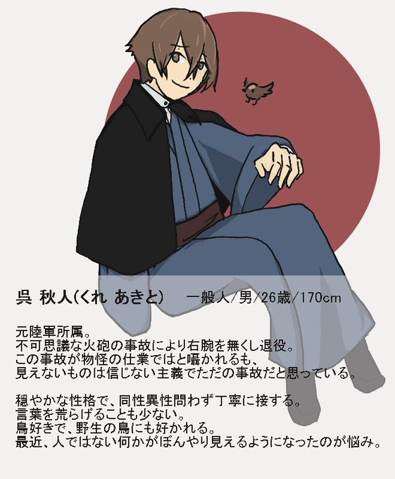 零月譚(@zerotukitan )に二人目、怪異です。声は櫻●孝宏さんを想像してくれればとおもいます。よろしくおねがいしまーす!
