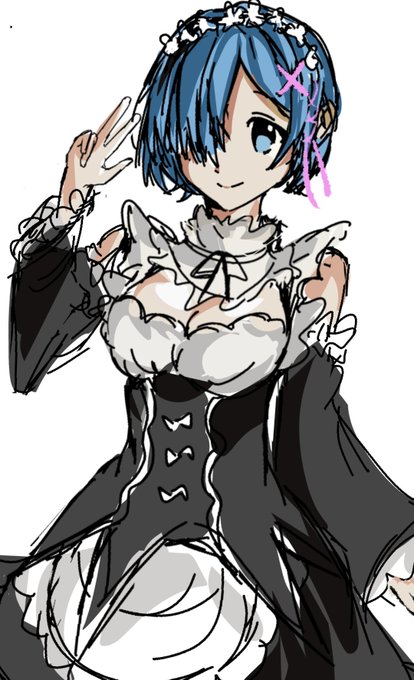 "雷姆,轻小说《Re:从零开始的异世界生活》的角色,可爱的女人,蓝色头发,微笑着注视着我。可爱。女仆中的妹妹。pixiv排名第一,美丽的。动漫的风格。がおう风格"