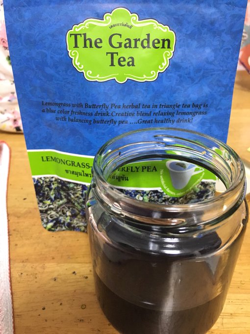 青いお茶初めて飲んだけどすっごい綺麗✨