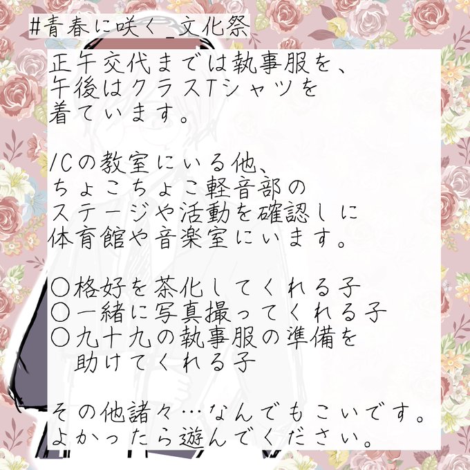 クラス(1-A)と部活の担当時間にあちこち行き来してますので、エンカ交流ご自由にお願いします🙏✨#青春に咲く_文化祭