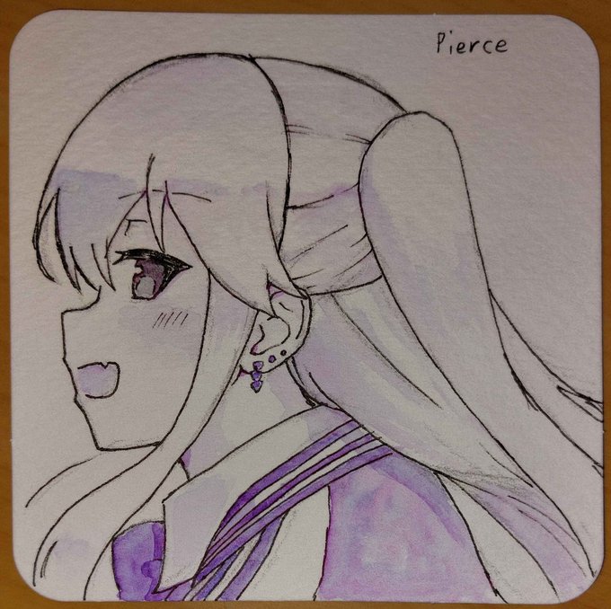 インクトーバーで描いてたやつで呉竹の顔彩耽美グラニュレーティングカラーズの幻青桃で塗ってて