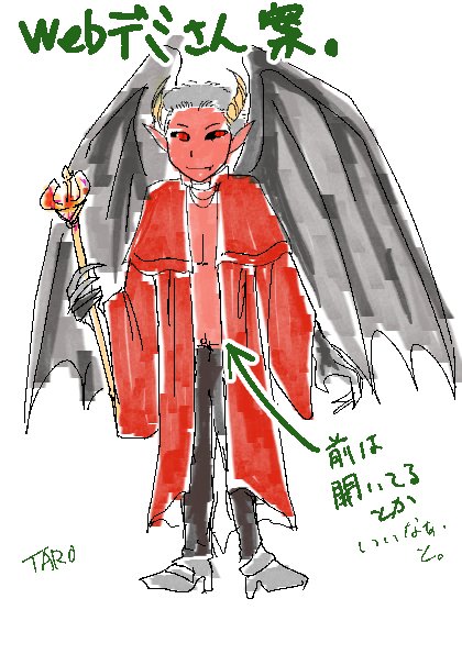 こんな感じになりました…(汗)ホントこういうセンスないわ…(滝汗)ローブっていうのがすごく悩んだけど襟だけ神父っぽくしといて中ははだけてて下は黒革パンツとかどうかなぁ。でももっと曲がった角の方がよかったかなぁ… #うちのwebデミさん