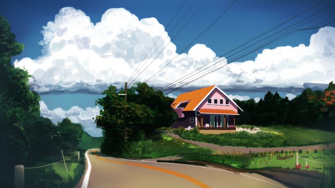 今日の配信では夏を惜しんででけぇ雲を3枚続けて描きました 後ろ2枚はグラデーションマップを使ってみたよ #風景スケッチ