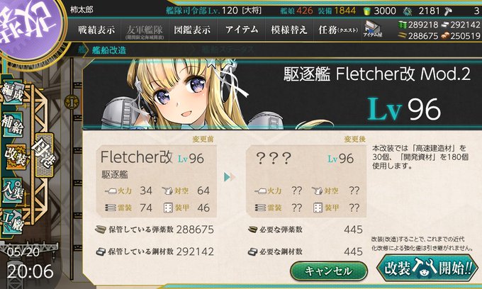 艦これ、入れた。 Fletcherの改ニは、こんな感じ。。。 ネタバレ注意。 すごく、大きいです!! 駆逐艦はいいぞ!