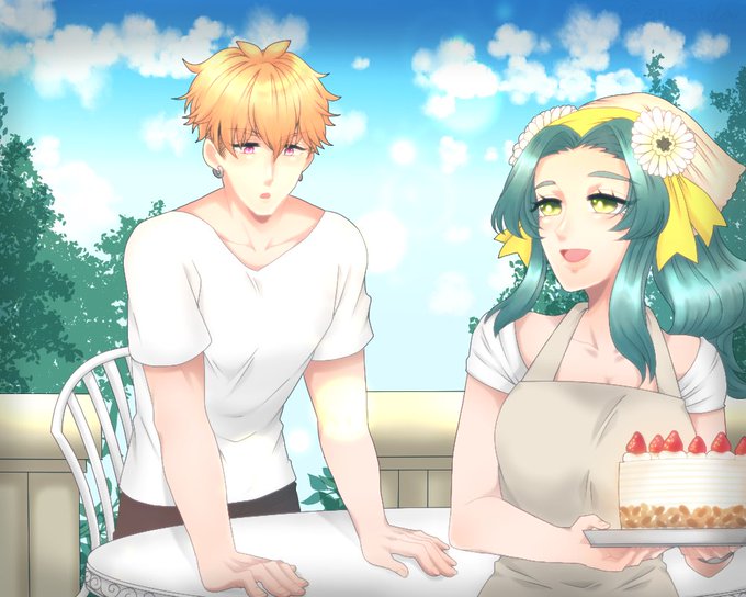@kishihime_kabe 夏生さん宅(@s0mmer_na2)レオナルドさんお借りしました! 家庭菜園のお手伝いしてもらったりします(◍´◡`◍)筋肉コンビです!!