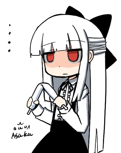 お嬢様だから濃厚高級アイスクリーム食べ放題だけど、一袋100円のチューペットの方が好きな、白髪ハーフアップジト目紅眼娘ちゃんだけど、綺麗に折れない白髪ハーフアップジト目紅眼娘ちゃん