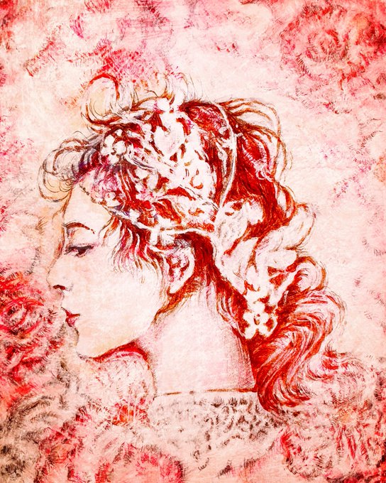 【髪飾りの少女Ⅶ】やっとなんとか統一感のある絵が描けた気がします。スタイルを模索するのは苦しくもあり、楽しくもあり。あまり考えずやれるのがアマチュアの良いところだと思います。