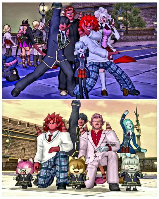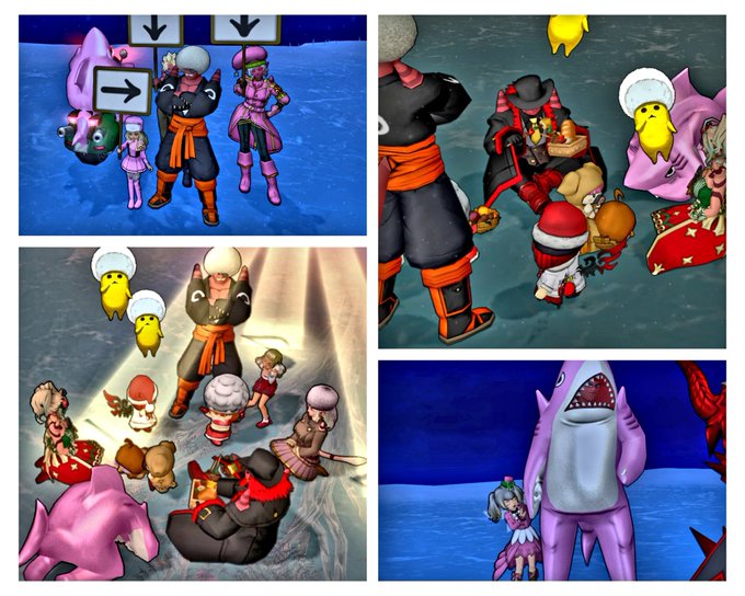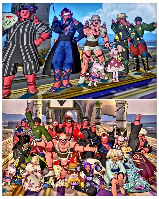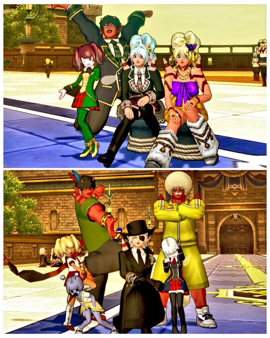 サブで #宇宙プク 『ワレワレハ プクリポダ』の合言葉を言って楽しんだ後、#鬼の日集会 でトムしっぽ補給してからの、モカになって #DQXすいかガールズ 🍉仮装メイク撮影会📷✨(別日🎃スタジオのも)