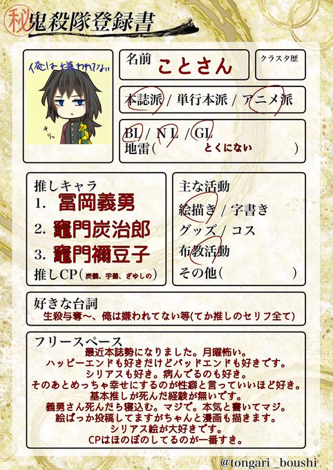 #鬼殺隊登録書 #鬼滅の刃