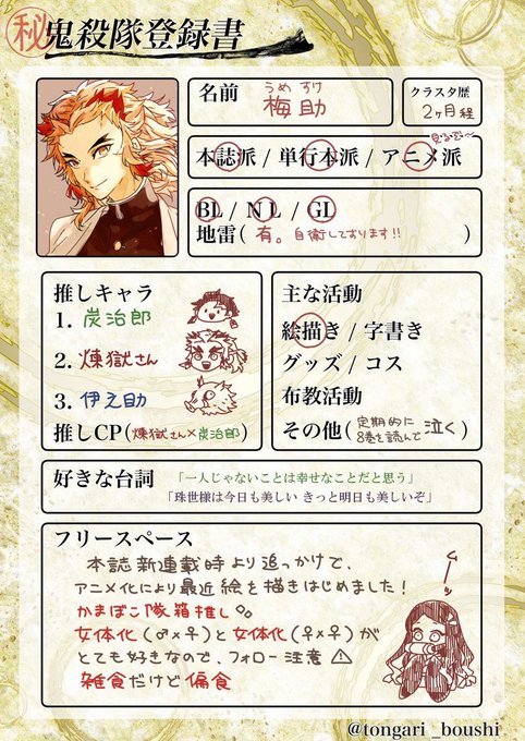 #鬼滅の刃自己紹介テンプレ