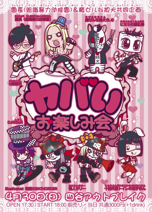 四谷アウトブレイクで開催される魔ゼルな規犬さんと組織暴力幼稚園の園長さん主催のライブに怪人サリーで出演します。