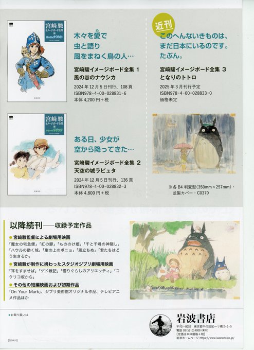 俺さー自慢なんだけど「魔女の宅急便」のポスターの没案として有名な、宮崎駿が描いたトイレに座るキキの絵(原画)も、つてを頼って見せてもらったことあるよね…岩波書店から刊行開始されたイメージボード全集は絵が絶対に見開きにかからないようになっててこれは他の画集もみならって!と思いました