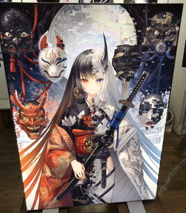 友達と魔界の住民さんの個展に行ってきた~!立体的に見える加工がされていたり鏡面の上に印刷されていて刀部分が光っていたり、実際に見て楽しめる個展でした🐰綺麗なイラストと特殊加工で満足感がすごい