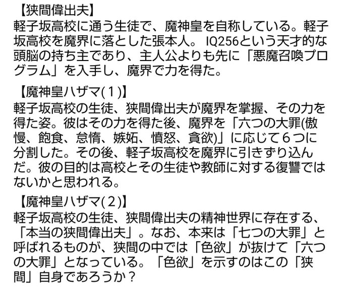 私は #狭間偉出夫 だった者だ。だが、もう君達のようなただの高校生じゃない。今や偉大なる魔界の支配者 #魔神皇 だ!