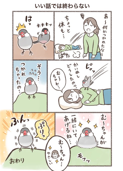 鳥野家の小鳥たち マンガ「いい話では終わらない」 ※同人誌収録バージョン #文鳥 #漫画が読めるハッシュタグ