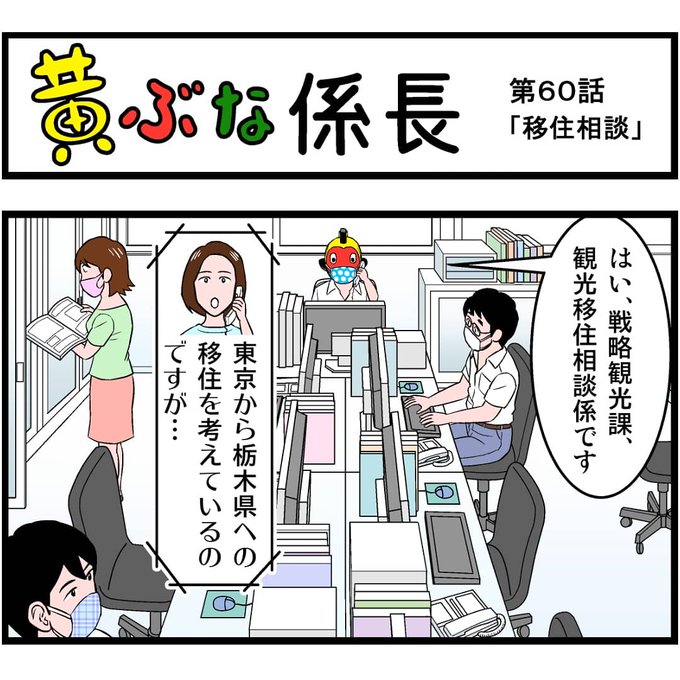 『黄ぶな係長』第60話「移住相談」。 栃木県は子育て支援も充実してます! #黄ぶな係長 #黄ぶな #黄ぶな運動 #4コマ #4コマ漫画 #漫画 #栃木県 #宇都宮市 #移住 #子育て #日光市 #佐野市
