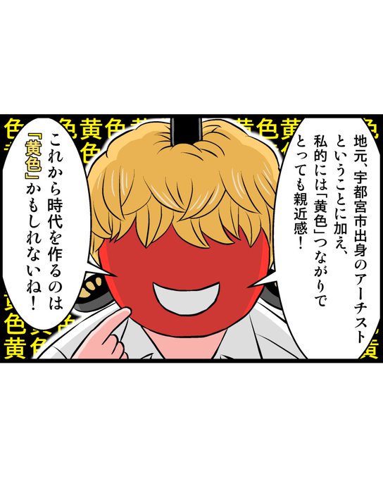 『黄ぶな係長』第61話「秋山黄ぶな係長」。 注目のアーチスト、秋山黄色は宇都宮市出身です! #黄ぶな係長 #黄ぶな #黄ぶな運動 #4コマ #4コマ漫画 #漫画 #栃木県 #宇都宮市 #秋山黄色