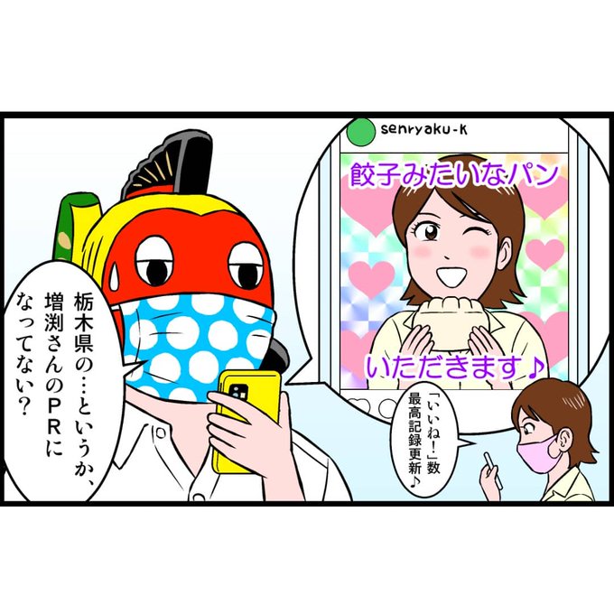『黄ぶな係長』第62話「SNS担当 増渕さん」。 SNSの本来の目的は・・・? #黄ぶな係長 #黄ぶな #黄ぶな運動 #4コマ #4コマ漫画 #漫画 #栃木県 #宇都宮市 #餃子みたいなパン #宇都宮餃子 #宇都宮餃子会 #餃子 #道の駅もてぎ #おとめミルク