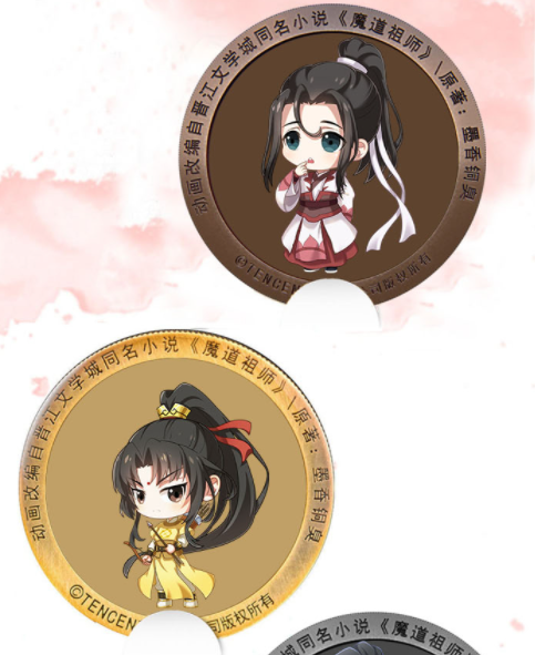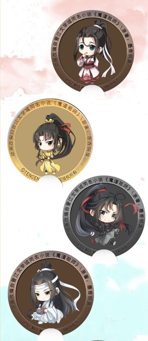黄油猫 coolbart x mdzs phone peripherals crowdfunding project has added more characters to their commerative badges! apart from wangxian, it now includes wen ning, jin ling, lan sizhui, lan jingyi, jiang cheng and shijie!