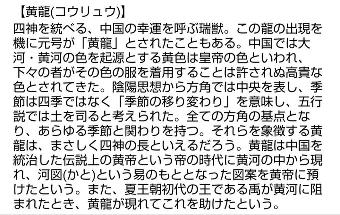 (#龍神 #青龍(#セイリュウ)/#霊鳥 #朱雀(#スザク)/#聖獣 #白虎(#ビャッコ)/#神獣 #玄武(#ゲンブ))+#黄龍(#コウリュウ)