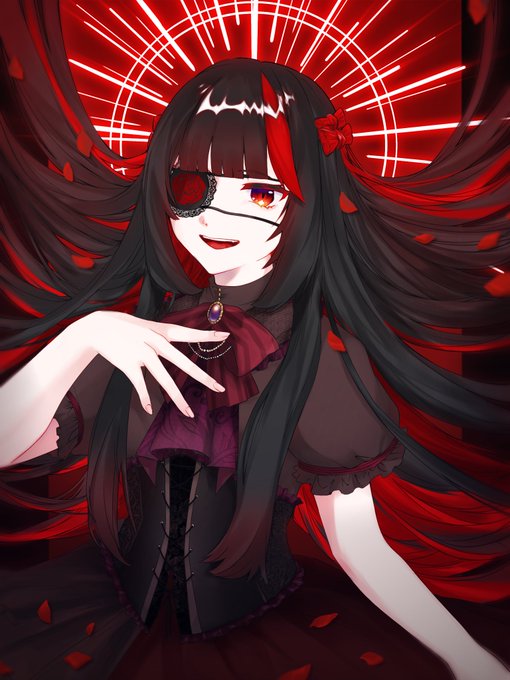 #黒羽いらすと屋 参加ありがとうございました🥀🖤 ゴシックなお洋服と赤色インナーカラーの組み合わせが最高に好きです…✨