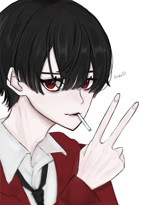 この髪型で黒髪最高に好き あとこの形のシャツね 好きです フェチを詰め込んだ #創作 #絵描きさんと繫がりたい
