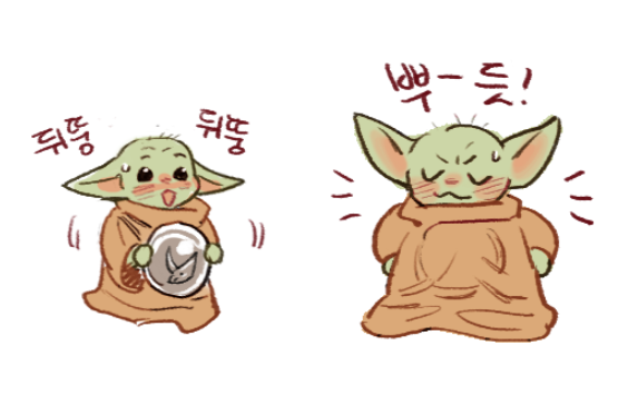 시즌 3 한국은 일주일 늦게 올라오는 거 짜증나지만... 우리 그로구는 세상 귀엽더라... 실제 드라마에 저런 대사는 없어용.