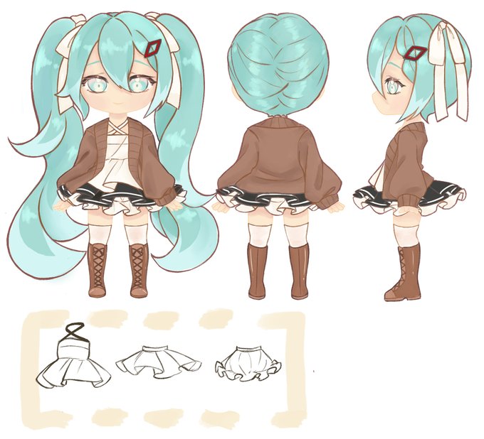 미쿠 넨도돌 공모전 낸 걸 모티브로 커플룩으로~ 디자인했는데 흉상만 그리니 티도 안 나네😇