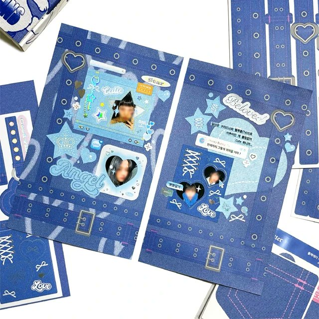 데님의 두가지 색 진청과 연청 버전으로 프레임ㆍ데코스티커ㆍ모조지팩 ㆍ속지ㆍ키링 입고 되었어요