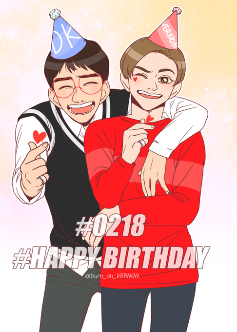 콩그레츄레이션♥ #세븐틴 의 동생라인 #도겸 이와 #버논 이의 생일을 축하합니다! 생일 끝나기 전에 올리려고 급하게 그리다보니 색칠도 제대로 못했어요 엉어ㅠㅠ #Happy_DK_VERNON_Day