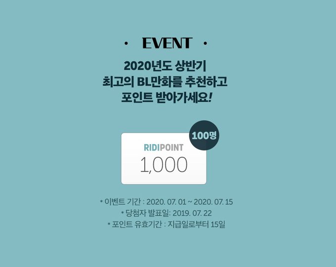 지금 #리디북스 에서는 2020년 상반기 BEST BL 만화 투표가 진행 중에 있습니다!!!