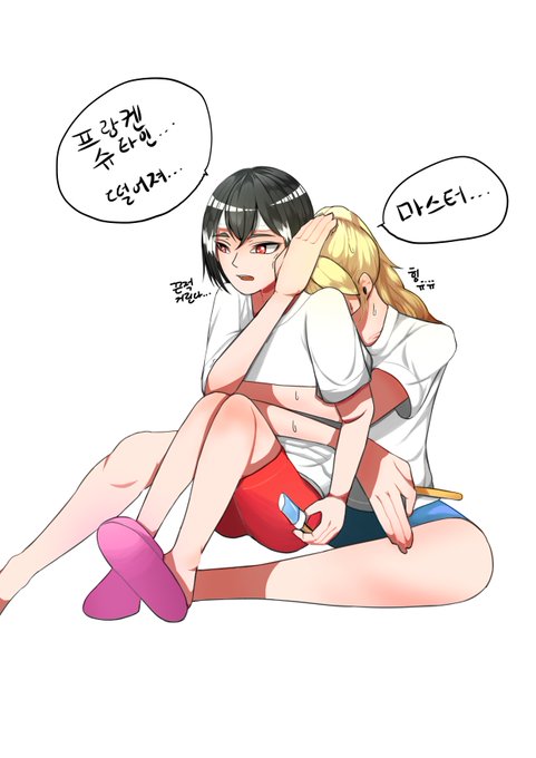한동안 바쁘고 그림 연습에 열중하 그림체도 바뀌고 채색법도 변화가 나타나더닝 바뀐김에 프랑라이 그리깅~ 의외로라이제르 여름에도 차가워서 아이들과 다른 가드들에게도 인기만점 라이제 그래서인지 아이들이 자꾸 라이제를 끌어 안으려니깐 막고 자기가 안는 프랑켄슈타인 ㅎㅎ