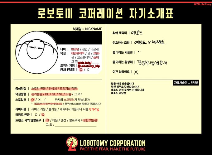 로보토미합니다. 저랑 트친해요. 어디서 본거 같은 사람인거 같으면 아마 그사람 맞습니다. 직원위주지만 환상체도 좋아합니다. 알티 위주 찾아가겠습니다!